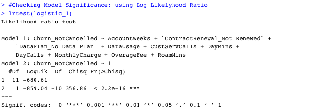 Next, we check the model significance using Log likelihood ratio